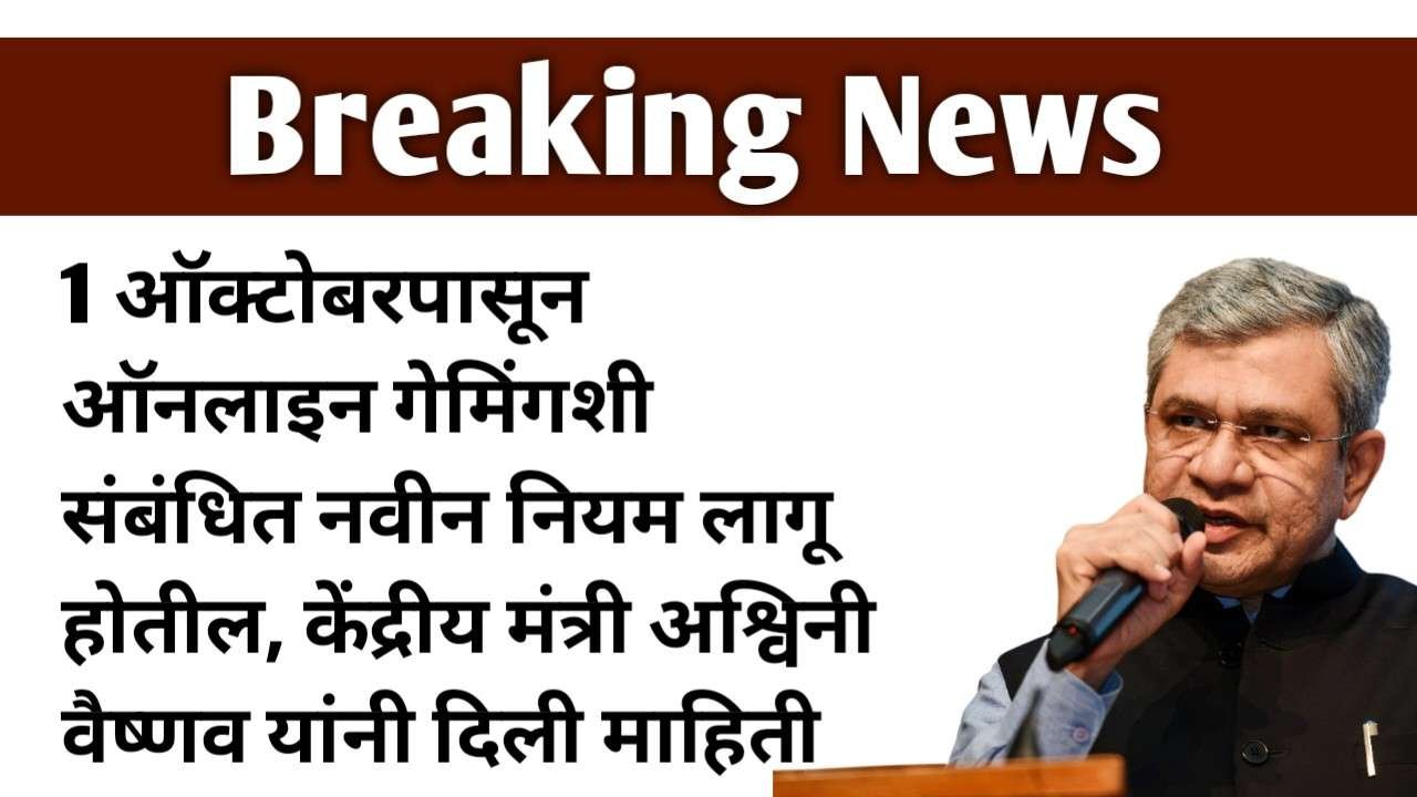1 ऑक्टोबरपासून ऑनलाइन गेमिंगशी संबंधित नवीन नियम लागू होतील, केंद्रीय मंत्री अश्विनी वैष्णव यांनी दिली माहिती.Online Gaming Bill